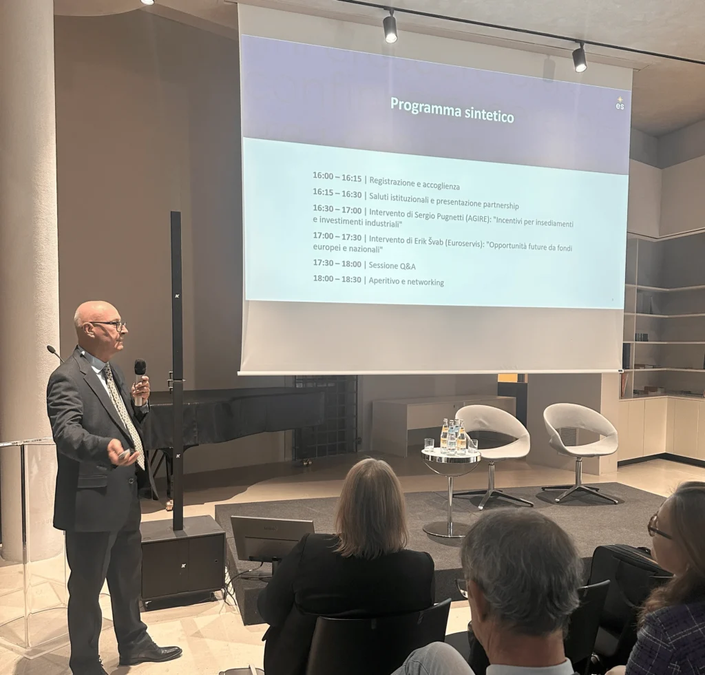 Udine, 30 settembre 2025 – Si è svolto con grande partecipazione presso la Sala Confindustria di Udine il workshop “AGIRE con Euroservis”, un evento strategico organizzato in partnership da Euroservis ed AGIRE. Un pomeriggio di approfondimento e networking dedicato alle imprese del territorio, per esplorare insieme le nuove opportunità offerte dai fondi europei e nazionali, dagli strumenti di finanza agevolata e dai programmi di sviluppo industriale.